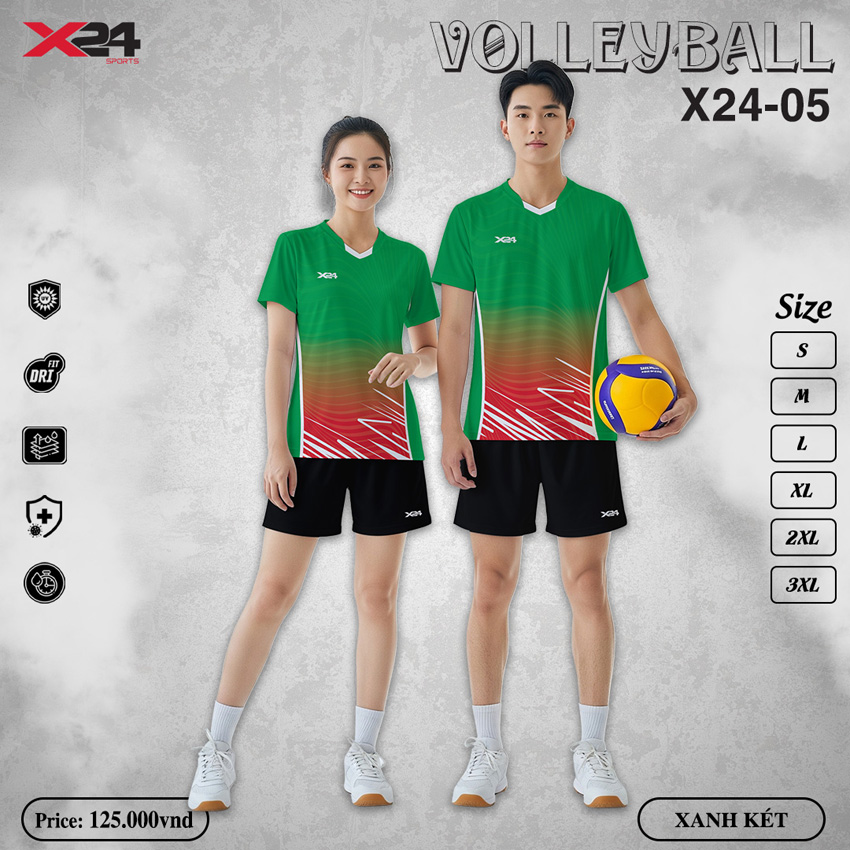 Áo Bóng Chuyền X24-05 Xanh Kết – Unisex Cá Tính, Chất Liệu Dri-Fit Thoáng Mát
