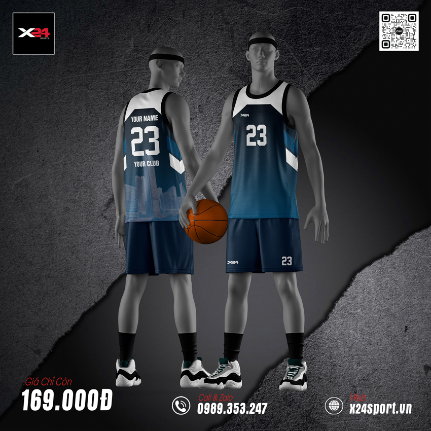 Bộ quần áo bóng rổ thiết kế mới với gam màu đen – xanh đậm – trắng tạo nên vẻ ngoài khỏe khoắn và sang trọng. Sự kết hợp màu sắc hài hòa cùng hiệu ứng chuyển sắc nhẹ nhàng từ áo xuống quần mang lại cảm giác hiện đại và tạo điểm nhấn nổi bật.