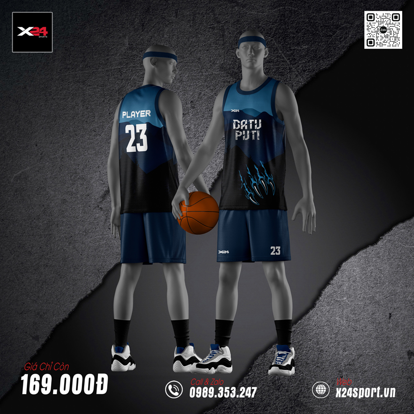 Bùng nổ tinh thần thể thao với bộ quần áo bóng rổ phối màu xanh navy – đen – trắng, điểm nhấn họa tiết lửa xanh nổi bật. Chất vải co giãn, thoáng mát, thấm hút mồ hôi cực tốt, mang lại cảm giác thoải mái tối đa trong từng pha bóng.